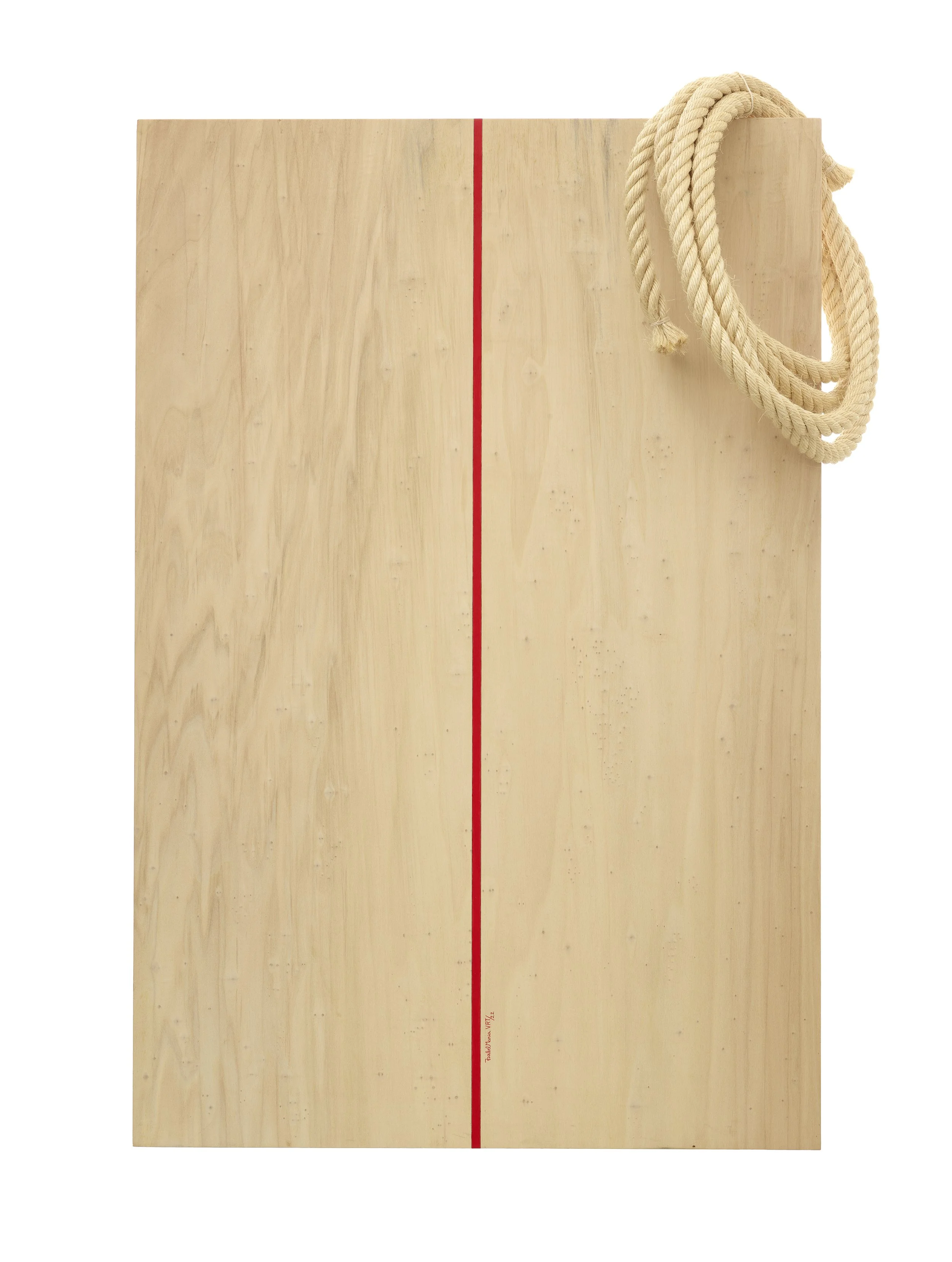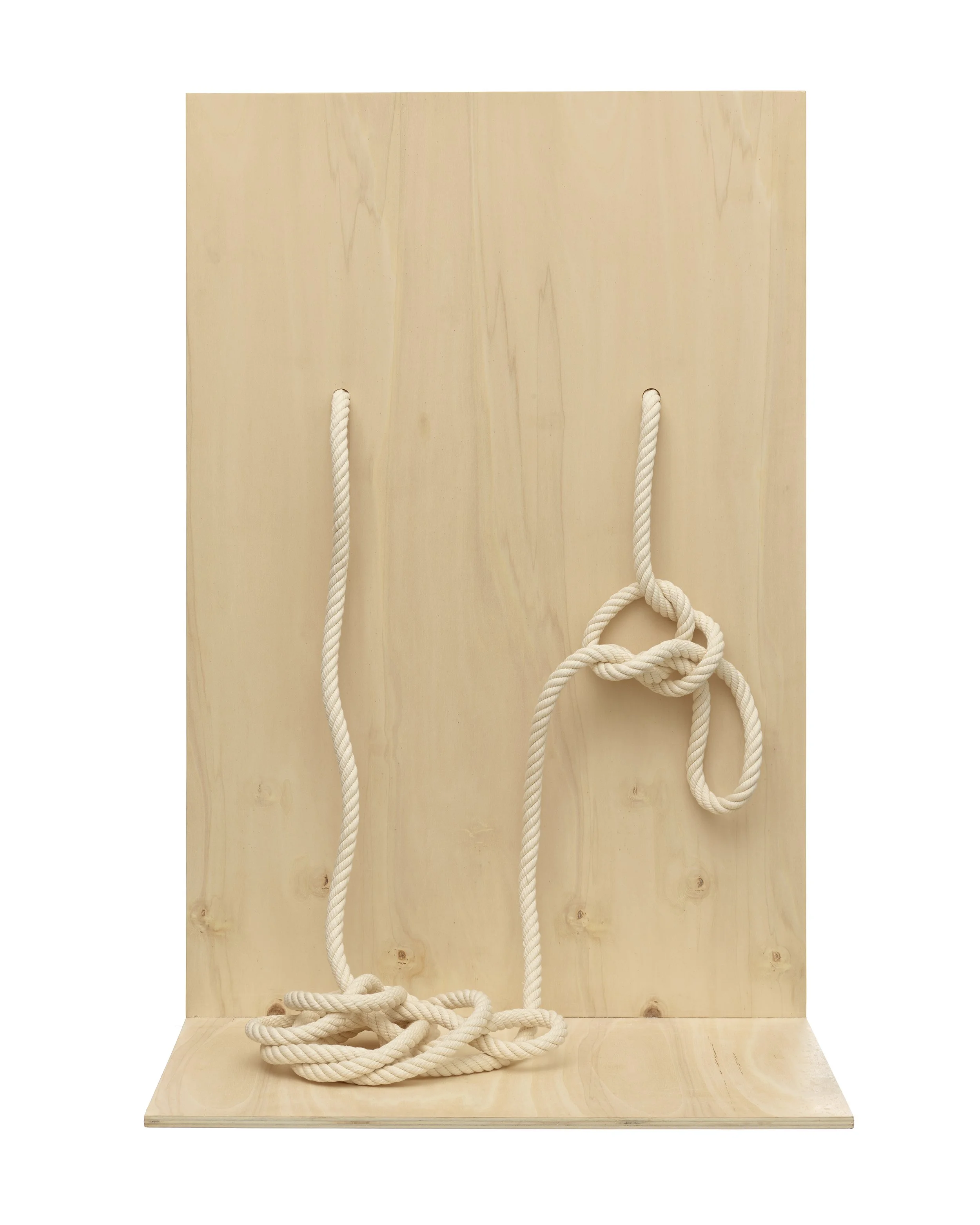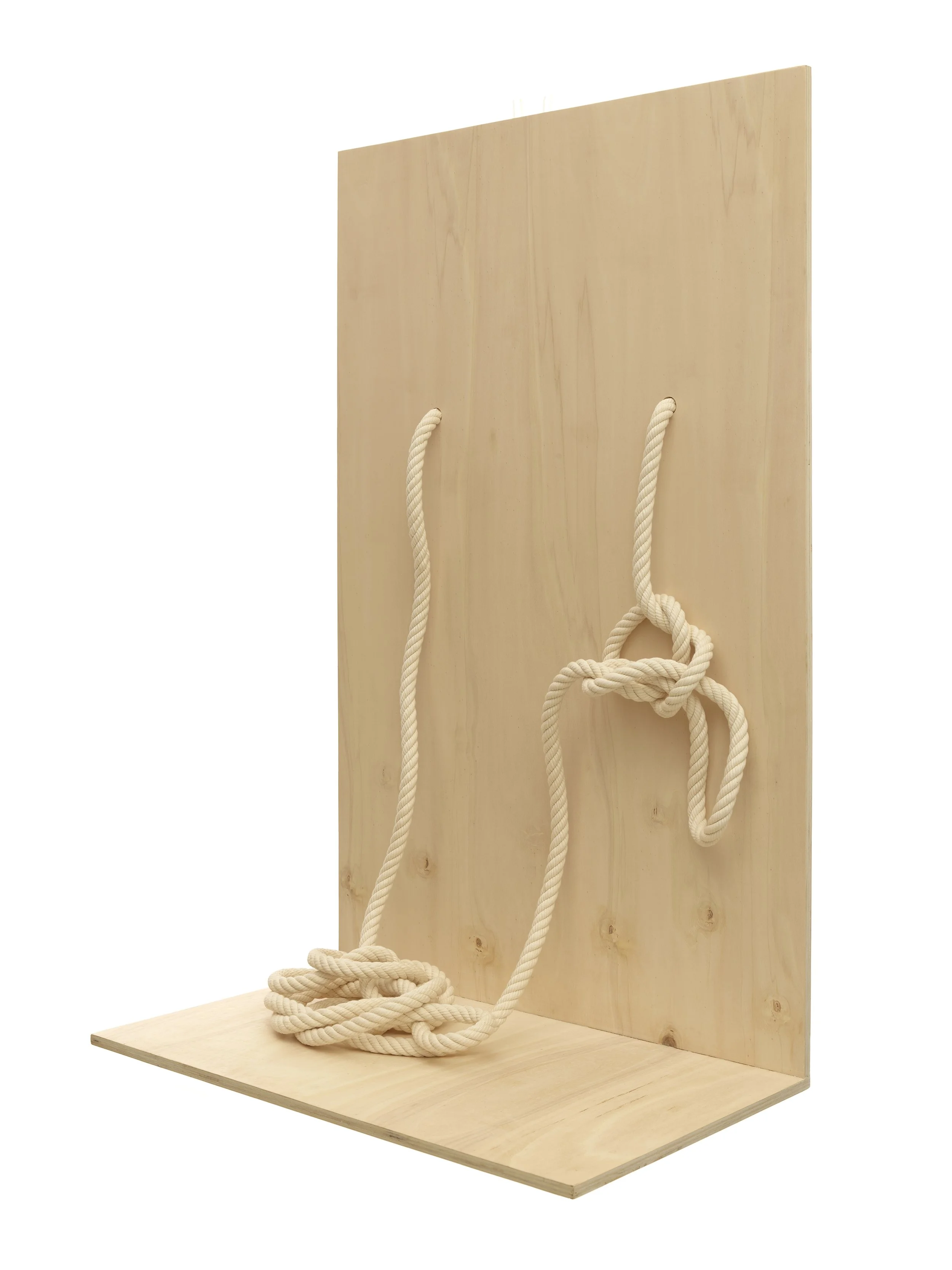 — Escultura em madeira de álamo ou choupo e corda de algodão.