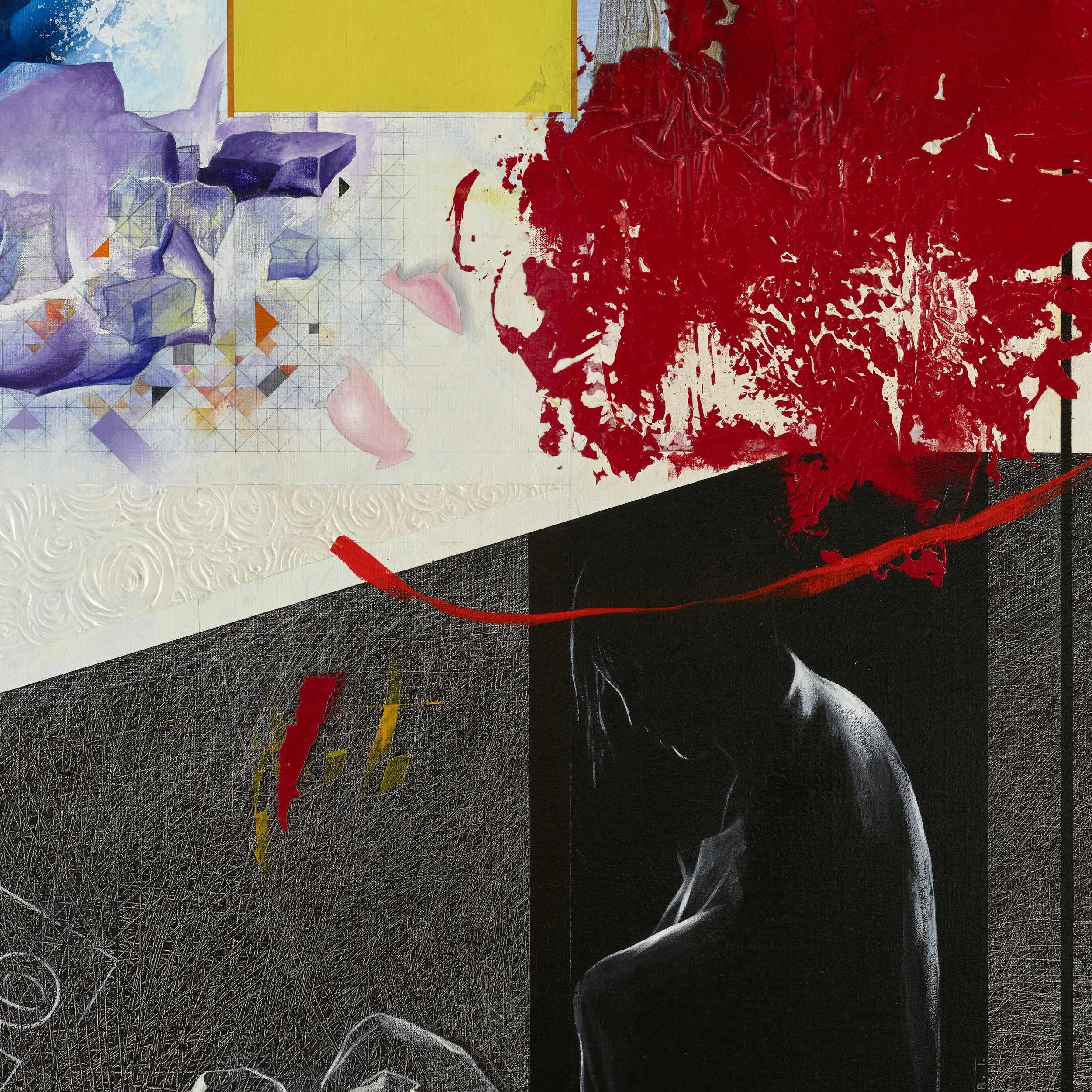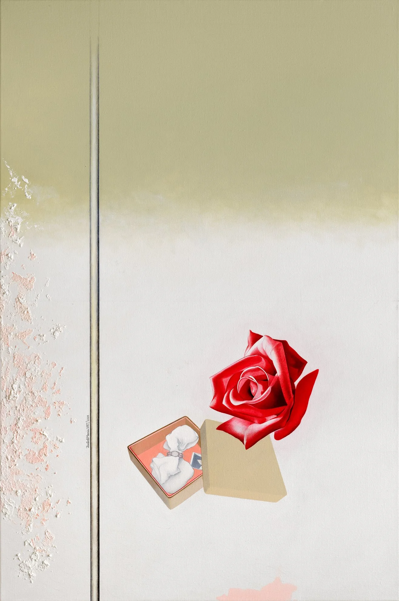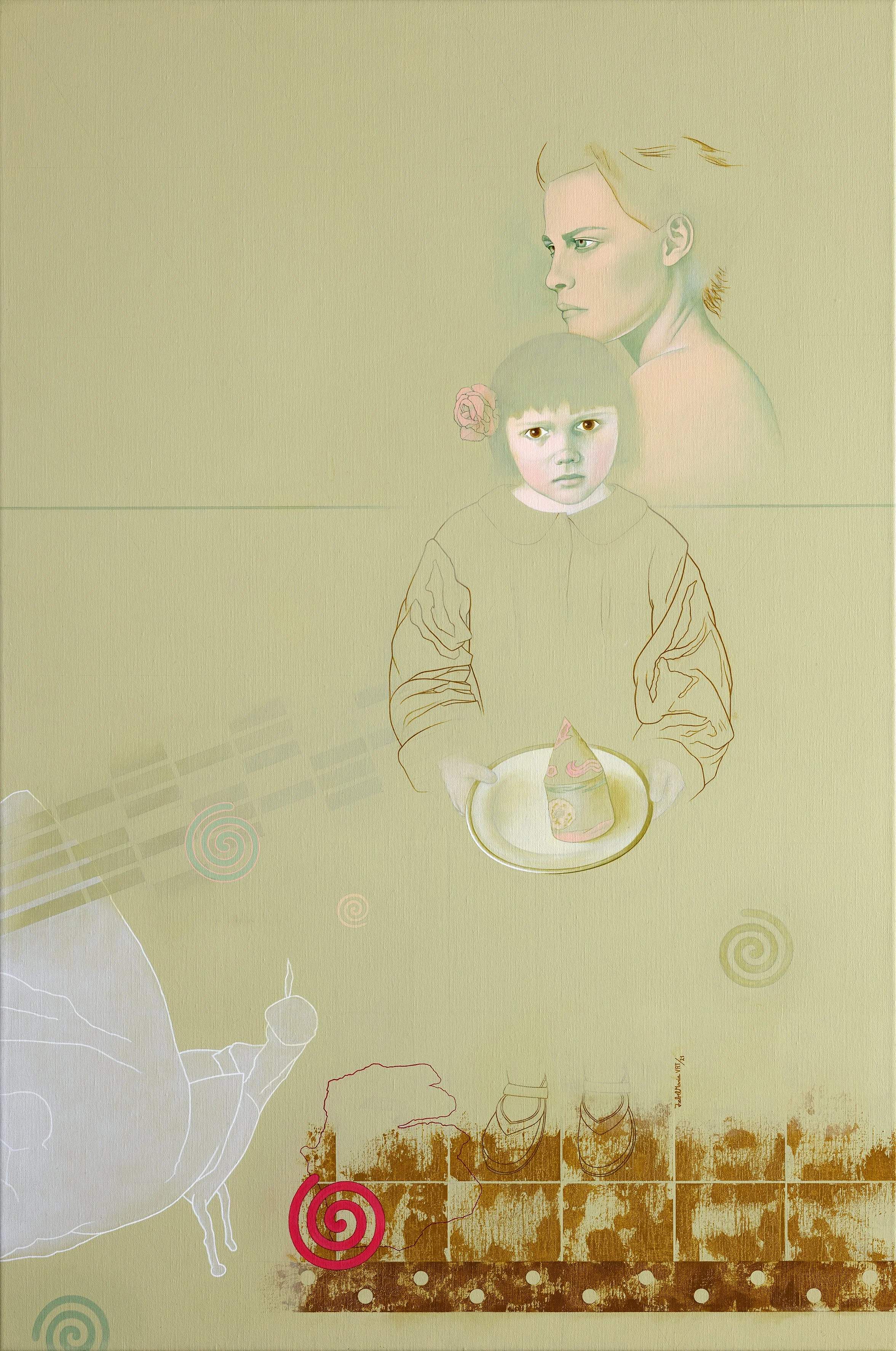 Tela que faz parte de uma série intitulada E TUDO SE TORNOU AMARELO, a qual compreende um conjunto de nove trabalhos inspirados no romance O Desenhador da autoria de Fátima Pombo.
