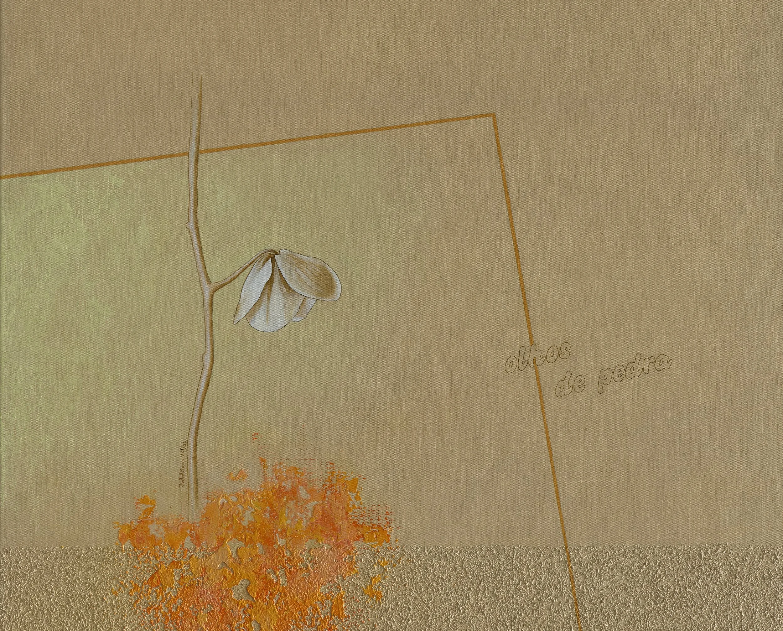 A apreensão sincrética desta obra evidência desde logo um certo despojamento do espaço pictural. Num universo onde está presente o silêncio, onde a cor tem uma presença discreta e onde a frase inscrita é potenciadora da não linearidade e ambiguidade semântica, procurou-se favorecer uma leitura plural. Assim, tendo como foco na composição plástica ressonâncias objetivas de um busto em pedra mármore de Miguel Ângelo – o qual poderá configurar um ponto de entrada na estrutura compositiva – esta obra, não obstante a força deste elemento determinante, bem como do simbolismo do elemento vegetal, desenha um vazio plástico, um “vácuo quântico”, passíveis de gerarem distensões subjetivas no espectador, deixando em aberto diferentes saídas na leitura deste texto visual, centrado na expressividade de um rosto humano materializado de forma sensível em pedra. Até porque, como diz Saramago: